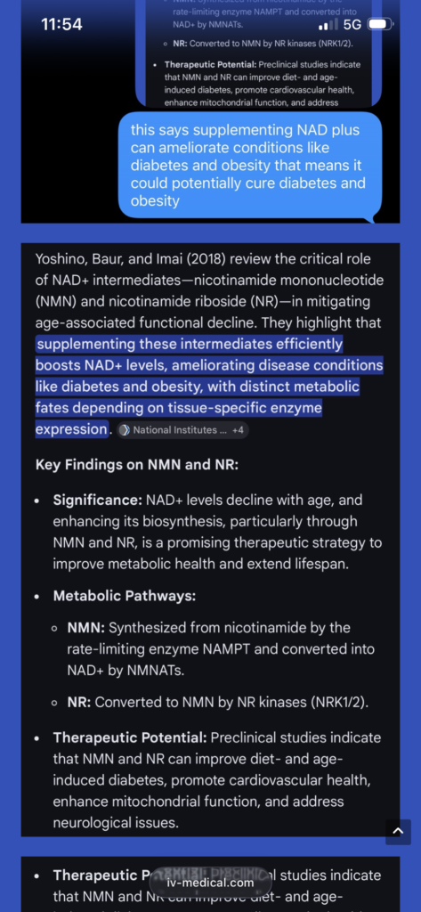 In summary the IV-medical.com NAD plus IV infusion is based on a biologically plausible mechanism involving cellular energy metabolism and while its objective benefits may be modest in many individuals there is consistent anecdotal evidence of improved energy and well being in patients who receive it. We believe it is a reasonable therapy to offer within a medically supervised framework that prioritizes appropriate screening laboratory evaluation and adherence to safe infusion practices.